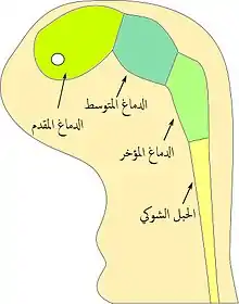 - يبدأ المخ في الانقسام إلى 5 حويصلات