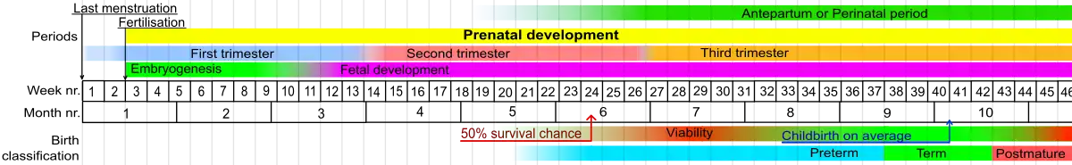 تبدأ الفترة الجنينية عند نهاية الأسبوع العاشر الحملي (الأسبوع الثامن من الإخصاب).