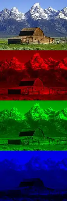 لتوليد لون باستخدام ح خ ز نراكب ثلاثة أضواء ملونة حمراء وخضراء وزرقاء. يسمى كل من الأضواء الثلاثة بالمكون للون الناتج، وكل منها يمكن أن يكون لها شدة محددة يختلف معها اللون الناتج.