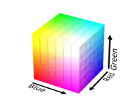 تمثل الثلاثية ح خ ز (r,g,b) الإحداثيات ثلاثية الأبعاد للون المحدد في المكعب أو أحد وجوهه أو على طول أحد حافاته. هذا الأسلوب يسمح بحساب الفرق اللوني للونين محددين في الفضاء اللوني ح خ ز بحساب بسيط للمسافة بينهما: كلما كانت المسافة أقصر، كان التشابه بينهما أكبر. والحسابات خارج السلسلة اللونية ممكن أيضا حسابه بهذه الطريقة أيضا.