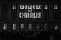 إنطفأت أضواء أكبر الرموز الوطنية برج إيفل لمدة خمسة دقائق. بعد يومين ولمدة يومين، عرض قوس النصر في أعلاه عبارة ضوئية وهي «باريس هي شارلي» (Paris est Charlie). وكذلك مكتبة فرنسا الوطنية عرضت على أحد جدرانها لمدة أيام صورة ضوئية كاريكاتورية لجورج فولينسكي.[66] وأيضا معهد العالم العربي وضع على واجهته «كلنا شارلي» (Nous sommes tous Charlie)[67]