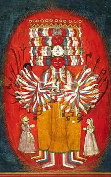 ثلاثة آلهة، براهما، فيشنو، شيفا، وآلهة أخرى تعتبر مظاهر لإله واحد، وتُعبد على أنها تجسد لبراهما.