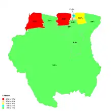 وفقاً لتعداد عام 2012، فإن نسبة 18% من السوريناميين هم من طائفة ساناتان الهندوسية، ونسبة 3.1% من آرياساماي، أمَّا نسبة 1.2% المتبقية فينتمون لطوائف هندوسية أخرى.