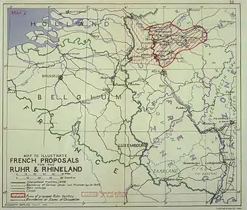 في عام 1947، قامت فرنسا بأخذ سار من ألمانيا وحولتها إلى محمية خاضعة للسيطرة الاقتصادية الفرنسية. عادت المنطقة إلى الإدارة الألمانية في 1 يناير 1957 لكن فرنسا احتفظت بالحق في استخراج الفحم من مناجم الفحم حتى عام 1981. كانت الخطط الفرنسية تهدف لفصل كامل الرور عن ألمانيا لكنها واجهت مقاومة كبيرة. في سبتمبر عام 1946، صرح وزير خارجية الولايات المتحدة جيمس ف. بيرنز في خطاب شتوتغارت " إعادة تأكيد السياسة بشأن ألمانيا" بأن الولايات المتحدة ستقبل المطالبات الفرنسية بشأن سارلاند، لكن ذلك: "لن تدعم الولايات المتحدة أي تعدي على المنطقة التي هي ألمانية بلا منازع أو أي تقسيم لألمانيا لا يرغب حقا به الأشخاص المعنيين. بقدر ما تدرك الولايات المتحدة بان سكان منطقة الرور وراينلاند يرغبون في البقاء متحدين مع بقية ألمانيا. والولايات المتحدة لن تعارض رغبتهم ".