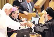 تمكنت الهيئة ممثلةً بعضوها المؤسس الدكتور مصطفى محقق داماد من الاجتماع مع بابا الفاتيكان بعد أن كان قد صرح البابا أن الإسلام هو سبب التطرف الديني في العالم، وبعض لقاء ممثل الهيئة مع بابا الفاتيكان قام البابا بتغيير فكرته ونظرته للإسلام والمسلمين وأصبح يدعو الهيئة للتحاور بشكل دوري لبحث عن علاجات وحلول لمشاكل التطرف والإرهاب حول العالم.[7][8][9]