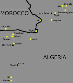 - Population, superficie et densité des communes au 31.12.2009, sur le site officiel de la wilaya de Béchar. Consulté le 23/02/2011. نسخة محفوظة 23 يناير 2016 على موقع واي باك مشين. [وصلة مكسورة]