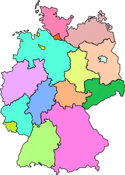 وهناك ثلاثة مستويات من الوحدات محددة، مع مستويين محليين (Laus) أدناه. ليس كل الدول لديها كل مستوى من مستويات الانقسام، اعتماداً على حجمها. واحدة من الحالات الأكثر تطرفاً هو لوكسمبورغ، التي ليس لديها سوى Laus.