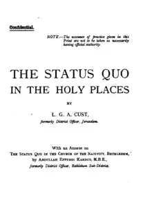 - Eva Maurer Morio, What does Status Quo stand for?, in History of Latin Patriarchate, on the website of the Latin Patriarchate of Jerusalem نسخة محفوظة 22 فبراير 2018 على موقع واي باك مشين. [وصلة مكسورة]