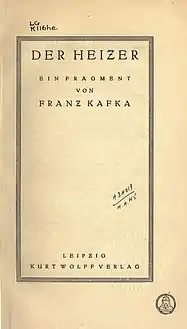 - Der Heizer : ein Fragment (Book, 1913) [WorldCat.org] نسخة محفوظة 13 مارس 2016 على موقع واي باك مشين.