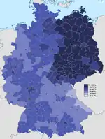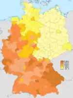 |CitationClass=تم تجاهله (مساعدة) - "Konfession, Bundesland - weighted (Kumulierter Datensatz)". Politbarometer 2016: Question V312.F1. 2016. مؤرشف من الأصل في 14 أبريل 2020 – عبر GESIS. الوسيط