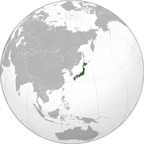 استمع، ومعناها: مصدر الشمس أو مَشرق الشمس، من: نِي 日 أي الشمس، هُونْ 本 أي المنبع أو الأصل.) بلد في شرق آسيا، يقع بين المحيط الهادئ وبحر اليابان، وشرق شبه الجزيرة الكورية. أطلق الصينيون على البلاد اسم أرض مشرق - منبع- الشمس، وهذا لوقوعها في أقصى شرقي العالم المأهول آنذاك. تتكون اليابان من جزر عديدة (حوالي ثلاثة آلاف جزيرة)، أربع من هذه الجزر تعد الأهم والأكبر على الإطلاق، وهي على التوالي (من الجنوب إلى الشّمال): كيوشو (九州), شيكوكو (四国), هونشو (本州), هوكايدو (北海道). بعد اعتماد الدستور في عام 1947 تحول نظام الحكم في اليابان إلى نظام ملكي دستوري يضم إمبراطورًا وبرلمان منتخبًا.