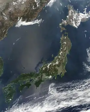 تقع معظم اليابان في المنطقة المعتدلة الشمالية ويسودها طقس موسمي رطب. تهب عليها رياح جنوبية شرقية من المحيط الهادئ أثناء الصيف، ورياح شمالية غربية من قارة أوراسيا في الشتاء. تتميز اليابان بأربعة فصول واضحة المعالم فهي: الربيع والصيف والخريف والشتاء. ولعل أجمل منظرين في اليابان هما منظر تفتح الساكورا - أزهار الكرز - في الربيع، والألوان الزاهية من الأحمر والبرتقالي والأصفر لأوراق الخريف. ويستمتع اليابانيون بهذه الملامح التي تبين تغير الفصول ويتابعون آخر تطوراتها في تقارير جوية مخصصة توضح بالخرائط أماكن ذروة انتشارها. وتمتاز المنطقتان الواقعتان أقصى الشمال وأقصى الجنوب بتباين واسع في المناخ بينهما. ومن الممكن مثلا في شهر مارس الاختيار بين الاستمتاع بحمام شمسي في الجنوب أو التزلج في الشمال.[32]