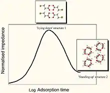 - معدل تكوين الهيكل الثاني يمليه مقدار الامتزاز شاغلاً الهيكل الأول والتفاعلات بين الجزيئات في وقت الغمر، t.