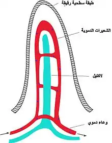 ويمكن أن يحدث الامتصاص في إتجاه جهازين تصريف، فكل زغبة معوية لها شبكة من الشعيرات الدموية (شريان – وريد) ومرابض أي قناة على نفس محور الزغبات المعوية متصل بالشبكة الليمفاوية. ومن ناحية الامتصاص، فلكل من هذين النظامين خواصه ومميزاته.