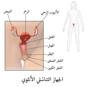 تشارك الأعضاء التناسلية الأنثوية في الجهاز التناسلي، في حين أن الخصائص الجنسية الثانوية للمرأة تشارك في رعاية الأطفال وللاصطفاء الجنسي للذكور. بالإضافة آلة وظيفتها التنظيمية المنتجة للهرمونات ينتج المبيضين أمشاج أنثى تسمى البويضات، وعندما يتم تخصيبها البويضة من قبل الحيوانات المنوية للذكر، تشكل الجنين. وفيما يخص الرحم فهو عضو ذو نسيج يحمي ويغذي الجنين والعضلة النامية لإخراجه عند الولادة حيث يستخدم المهبل. وتطور الثدي من الغدة العرقية لإنتاج الحليب لتغذية الصغار بعد الولادة وهو أكثر الخصائص المميزة للثدييات. يكون الثدي بشكل عام أكثر بروزاً في النساء البالغات مقارنةً بمعظم الثدييات الأخرى. هذا البروز ليس ضرورياً لإنتاج الحليب ولكنه يساعد جزئيا في اصطفاء جنسي.