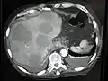 صورة أشعة مقطعية لانبثاثات متعددة بالكبد