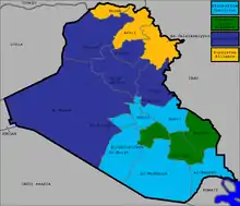 | المحافظة | القائمة العراقية | ائتلاف دولة القانون | الائتلاف الوطني العراقي | التحالف الكردستاني | حركة التغيير (كوران) | جبهة التوافق العراقية | ائتلاف وحدة العراق | الاتحاد الإسلامي الكردستاني | الجماعة الإسلامية الكردستانية | المجموع |