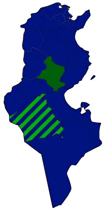 | بالأزرق: ولايات جائت فيها النهضة في المركز الأول حسب المقاعد بالأخضر القاتم: ولايات جائت فيها العريضة في المركز الأول حسب المقاعد خطوط: تقاسم في المركز الأول بين النهضة والمؤتمر | ||||||||||||||||||||||||||||||||||||||||||||||||||||||||||||||||||||