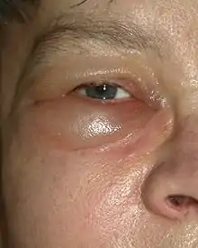 - المتلازمه اللائكيه- الانتفاخ حول العينين هو أول العلامات للتورم
