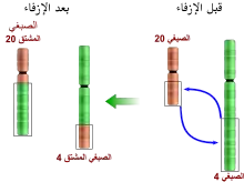 - ترجمة Chromosome translocation حسب بنك باسم للمصطلحات العلمية؛ مدينة الملك عبد العزيز للعلوم والتقنية، تاريخ الوصول: 05 02 2017.