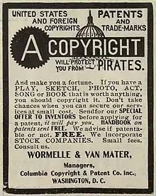 ملصق حكومي حول موضوع انتهاك حقوق الطبع والنشر، والتي صدرها سنة 1906
