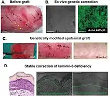 - Michelle Kerns; et al. (2007-09-04). "Reprogramming of keratin biosynthesis by sulforaphane restores skin integrity in epidermolysis bullosa simplex". Proc Natl Acad Sci U S A. 104 (36): 14460–14465. doi:10.1073/pnas.0706486104. PMC 1964870. PMID 17724334. الوسيط