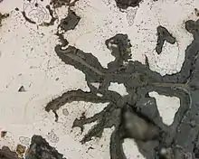 صورة مجهرية لانحلال تلقائي في سبيكة حديد الصب.