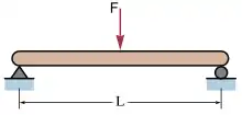كمرة بسيطة محملة بحمل موزع متساوي- حيث:: = قوة عند منتصف الكمرة.
