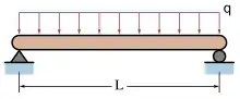 - الانحناء المرن لكمرة بسيطة محملة بحمل موزع متساوي عند نقطة المنتصف يمكن حسابها عن طريق: