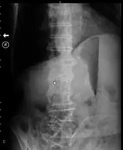 ![]() تم التقاط الأشعة السينية من البطن لشخص يعاني من انسداد في مخرج المعدة أثناء على جانبهم. هناك فقاعة هواء معدية بارزة ، ومستوى سائل هواء معدي ، و معدة متوسعة مع جسيمات بداخلها. تم التقاط الأشعة السينية من البطن لشخص يعاني من انسداد في مخرج المعدة أثناء على جانبهم. هناك فقاعة هواء معدية بارزة ، ومستوى سائل هواء معدي ، و معدة متوسعة مع جسيمات بداخلها. | |