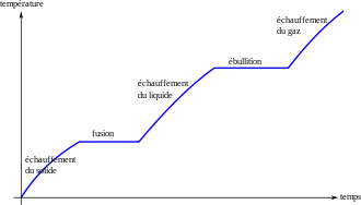 ويبين الشكل البياني تغير درجة الحرارة (المحور الرأسي) للمادة الصلبة مع زمن التسخين (المحور الأفقي) . ونرى ثبات درجة الحرارة عند تحول المادة الصلبة إلى سائل ، وكذلك ثبات درجة الحرارة عند نقطة الغليان أثناء تحول السائل إلى بخار .
