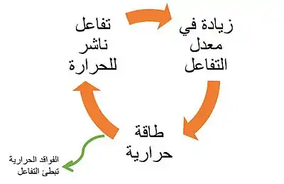 يحصل الانفجار الحراري عندما يزداد معدل التفاعل بسبب زيادة درجة الحراري مسببا زيادة اخرى في درجة الحراري مما يقود إلى زيادة لاحقة في معدة التفاعل وهكذا. تسببت هذه الظاهرة بحصول حوادث صناعية لعل اشهرها هو فاجعة مدينة تكساس عام 1947 التي نتجت عن ارتفاع حرارة حمولة من نترات الامونيوم في ميناء المدينة، وكارثة بوبال حيث تسبب دخول ماء إلى خزان ميثيل ايزوسيانات إلى اطلاق عملية انفجار حراري.