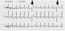 Two PACs as seen on a rhythm strip Two PACs as seen on a rhythm strip | |
