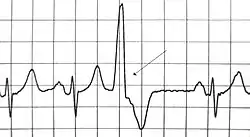 نلاحظ أثناء قراءة تخطيط القلب الكهربائي ان موجات QRS و T تبدو مختلفة جدا عن القراءات العادية وان التباعد بين الضربة الهاجرة وموجة QRS السابقة هو أقصر بكثير من المعتاد. ومع ذلك، فإن الوقت بين موجات QRS السابقة واللاحقة يبقى على حاله كالمعتاد بسبب الوقفة التعويضية.[5]