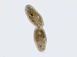 خلية من الهدبيات تمر بمرحة انقسام السيتوبلازم، ويظهر أخدود الانقسام، حيث يمكن رؤيته بوضوح.