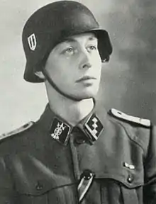 بيو فيليباني رونكوني في زي متطوع أجنبي في فافن إس إس. وهو يرتدي علامات طوق الكتيبة الأولى من كتيبة Waffen-Grenadier-Brigade der SS (italienische Nr. 1) .