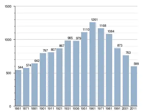 في سنة 1861 بلغ عدد السكان 544 نسمة، وتطور العدد ليصل في سنة 2011 لـ 599 نسمة.