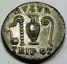 - Festus epitome 2: augur ab avibus gerendoque dictus, quia per eum avium gestus edicitur; Servius, Kommentar zu فيرجيل, الإنيادة 5,523: augurium dictum quasi avigerium quod aves gerunt; Sueton, Augustus 7.