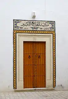 الباب (الجمع: أَبْوَاب، بِيبَان) وهو المدخل والمخرج للموضع المعين، جهة لإغلاق فتحة في جدار.[1][2][3][4] يتم عمل الفتحات في الهيكل الخارجي للمبنى، وذلك للسماح بوجود اتصال بين المساحة الخالية المحصورة والعالم الخارجي، وكذا للسماح بوجود صلة مع المساحة الخالية الخارجية حينما تكون الظروف الطبيعية مواتية وملائمة. ويتم عمل هذه الفتحات في القواطيع الداخلية للسماح بالاتصال بين مختلف الأجزاء الموجودة في المساحة الخالية المحصورة، ومن ثم يمكن التحكم في الوصل أو الفصل في الحوائط والأبواب والنوافذ والتي يمكن جعلها في الفتحات على أن يرتكز نوع التصميم الخاص بها على الغرض الذي تم استهدافه منها، وعلى الرغم من أن غرض الأبواب والنوافذ هو أن تخدم بصورة مؤقتة نفس الشيء كالحوائط التي تم وضعها فيها إلا أنه يمكن أن يتم استخدامها كذلك من قبل المهندس المعماري كي يوجد من حيث طبيعتها ولونها وأبعادها وعلاقتها مع كتلة هيكل المبنى - بعضاً من المؤثرات المعمارية التي تسر أعين الناظرين وتحدد وتميز المبنى بسمة مميزة.