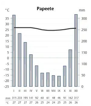 |CitationClass=تم تجاهله (مساعدة); تحقق من التاريخ في:|تاريخ أرشيف=(مساعدة) - "Papeete 1981-2010 Averages". Meteo France. مؤرشف من الأصل في 03 يوليو 2018. اطلع عليه بتاريخ 12 نوفمبر 2015. الوسيط