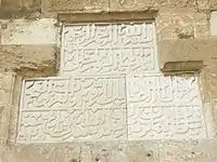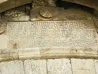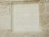 نقش على باب الخليل بالعبرية والعربية عن إصلاحات قامت بها إسرائيل عام 1969م.