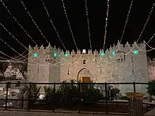 باب العامود أو باب دمشق ويقال له أيضا باب نابلس وهو من أهم وأجمل [1] أبواب مدينة القدس المحتلة في فلسطين. ويكتسب الأهمية كونه المدخل الرئيسي للـمسجد الأقصى وكنيسة القيامة وحائط البراق، ومنه نلج إلى سوق تجاري يسمى سوق باب خان الزيت ومنه نتفرع إلى أسواق عدة منها سوق العطارين وسوق اللحامين وسوق القطانين وسوق الصاغة وسوق الحصر ويمكن عبره الوصول إلى الحي المسيحي والمسمى حارة النصارى من الجهة اليمنى والحي الإسلامي إلى اليسار والأمام. ومن بين الأسواق المذكورة يعتبر سوق باب خان الزيت الشارع الرئيسي الذي يقطع البلدة القديمة ومن وسطها تقريبا من الشمال ويتجه نحو الجنوب، وبه نشاط تجاري مزدهر كبير ويفتح على المناطق الشمالية من المدينة.