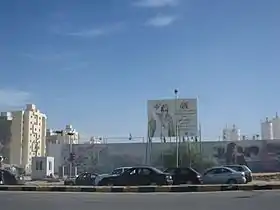 ![]() صورة للقذافي في لوحة إعلانيّة ضخمة خِلال احتفالهِ عام 2010 بمرور 41 سنة من قيادته للدولة الليبيّة صورة للقذافي في لوحة إعلانيّة ضخمة خِلال احتفالهِ عام 2010 بمرور 41 سنة من قيادته للدولة الليبيّة | |