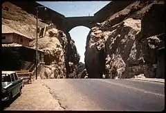 | وهو شصر مقطوع في جبل كان محيطاً بموضع عدن من الساحل فلم يكن لها طريق إلى البر إلا للرّجل لمن ركب ظهر الجبل فقطع في الجبل باب مبلغ عرض الجبل حتى سلكه الدواب والجمال والمحامل والمحفات. |