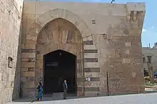 - باب يلي المدينة، * وباب يلي البرية، * وبابان بينهما في الوسط،