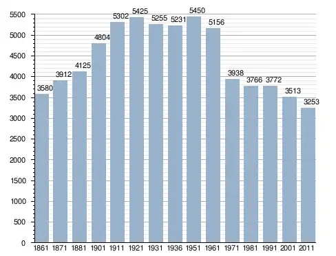 في سنة 1861 بلغ عدد السكان 3٬580 نسمة، وتطور العدد ليصل في سنة 2011 لـ 3٬253 نسمة.