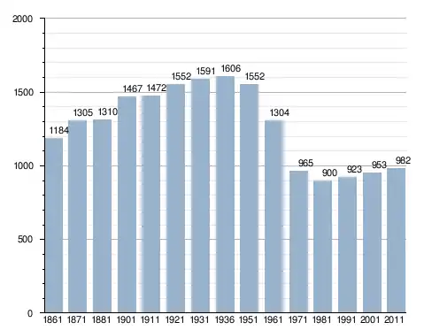 في سنة 1861 بلغ عدد السكان 1٬184 نسمة، وتطور العدد ليصل في سنة 2011 لـ 982 نسمة.