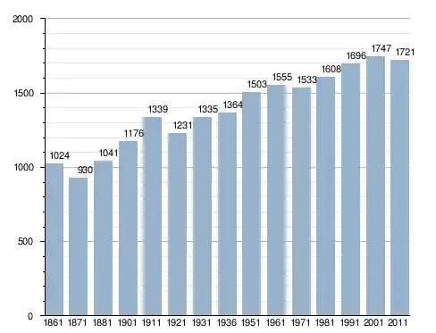 في سنة 1861 بلغ عدد السكان 1٬024 نسمة، وتطور العدد ليصل في سنة 2011 لـ 1٬721 نسمة.