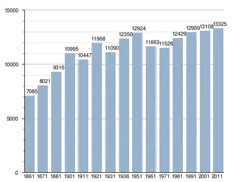 في سنة 1861 بلغ عدد السكان 7٬085 نسمة، وتطور العدد ليصل في سنة 2011 لـ 13٬325 نسمة.