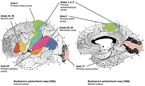 - Brodmann K (1909). "Vergleichende Lokalisationslehre der Grosshirnrinde" (باللغة الألمانية). Leipzig: Johann Ambrosius Barth. مؤرشف من الأصل في 29 نوفمبر 2014. الوسيط